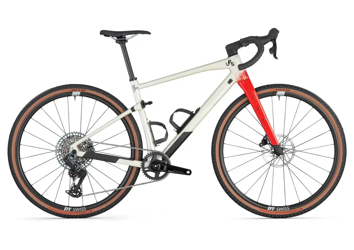 The latest evolution of gravel adventure bike, URS 01 FOUR is outfitted with the SRAM Rival AXS groupset, paired with the SRAM GX Eagle transmission and finished off with DT Swiss G 1800 SPLINE wheels booted with 44mm WTB Raddler tires.