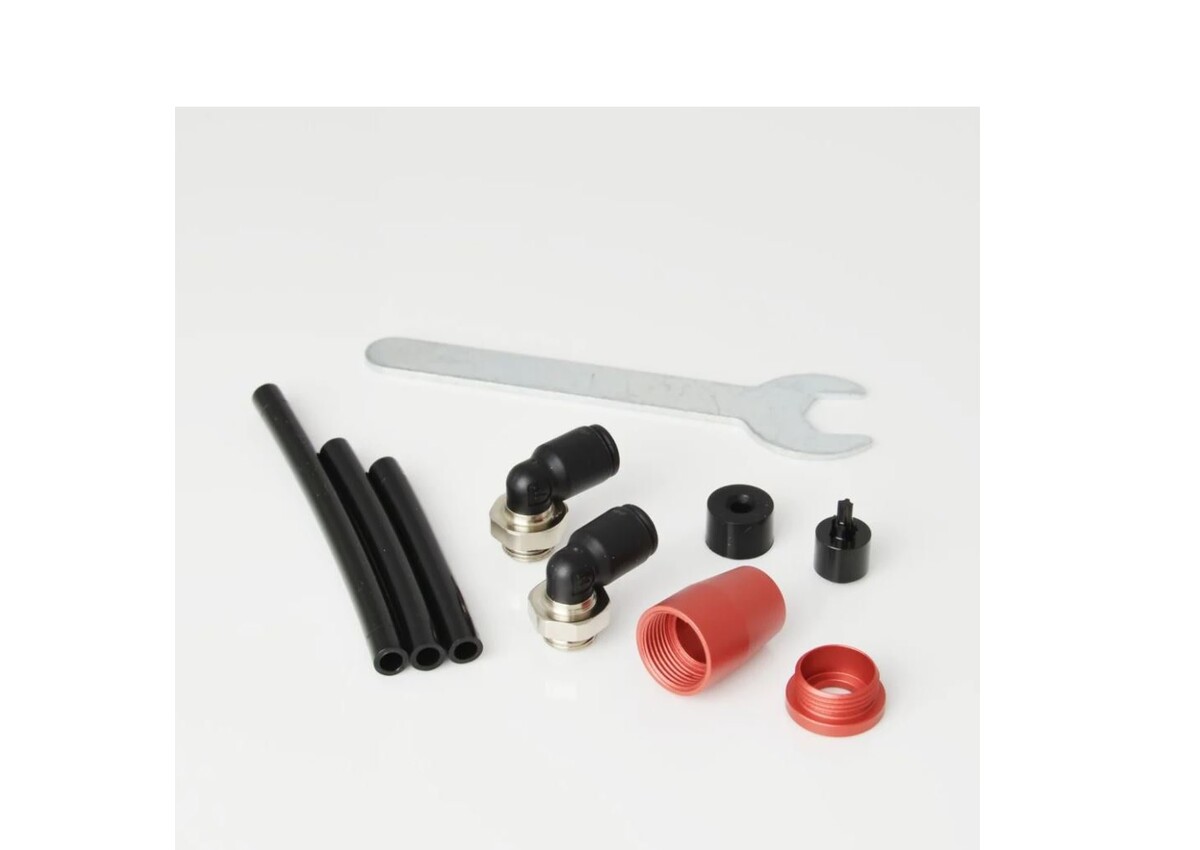 This kit fits directly to your Fumpa, miniFumpa or nanoFumpa to allow you to pump up tyres that have hard-to-reach valves. The elbow connectors have 360 degree rotation, which allow the nozzle to be oriented in any direction. The nozzle is made from CNC-machined aluminium. Quality Legris elbow connectors provided.