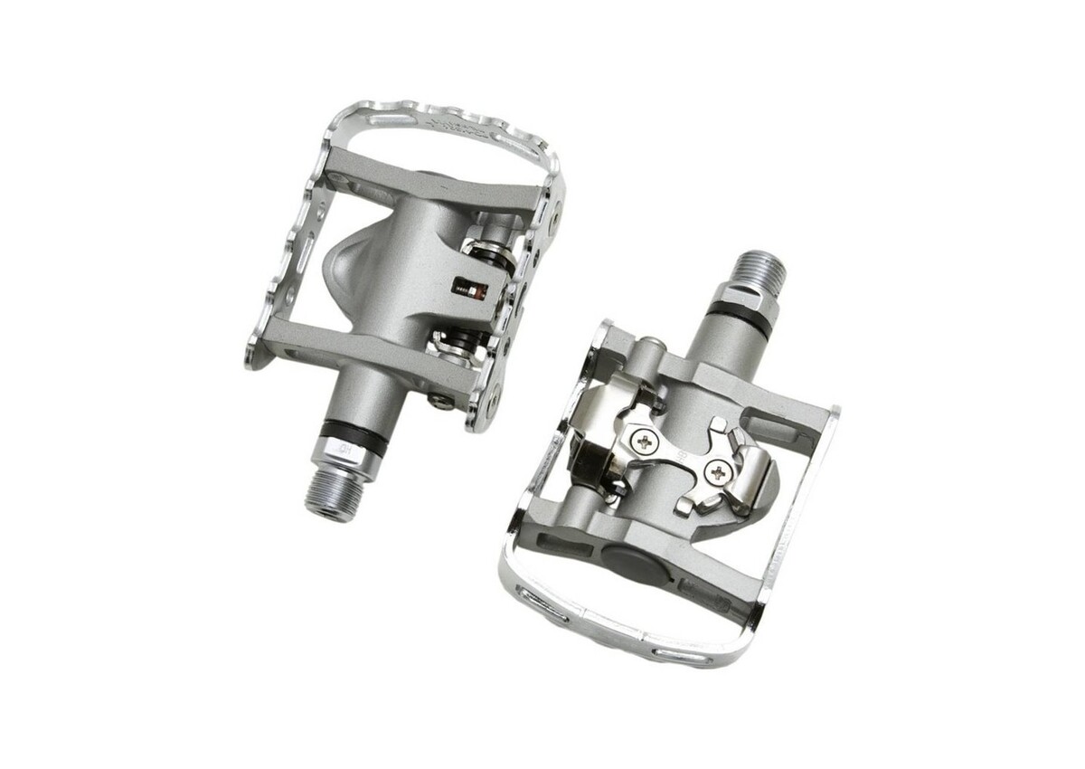 Combines the power of Shimano's SPD® and the convenience of a platform pedal. Cleats included. Sold as pair.