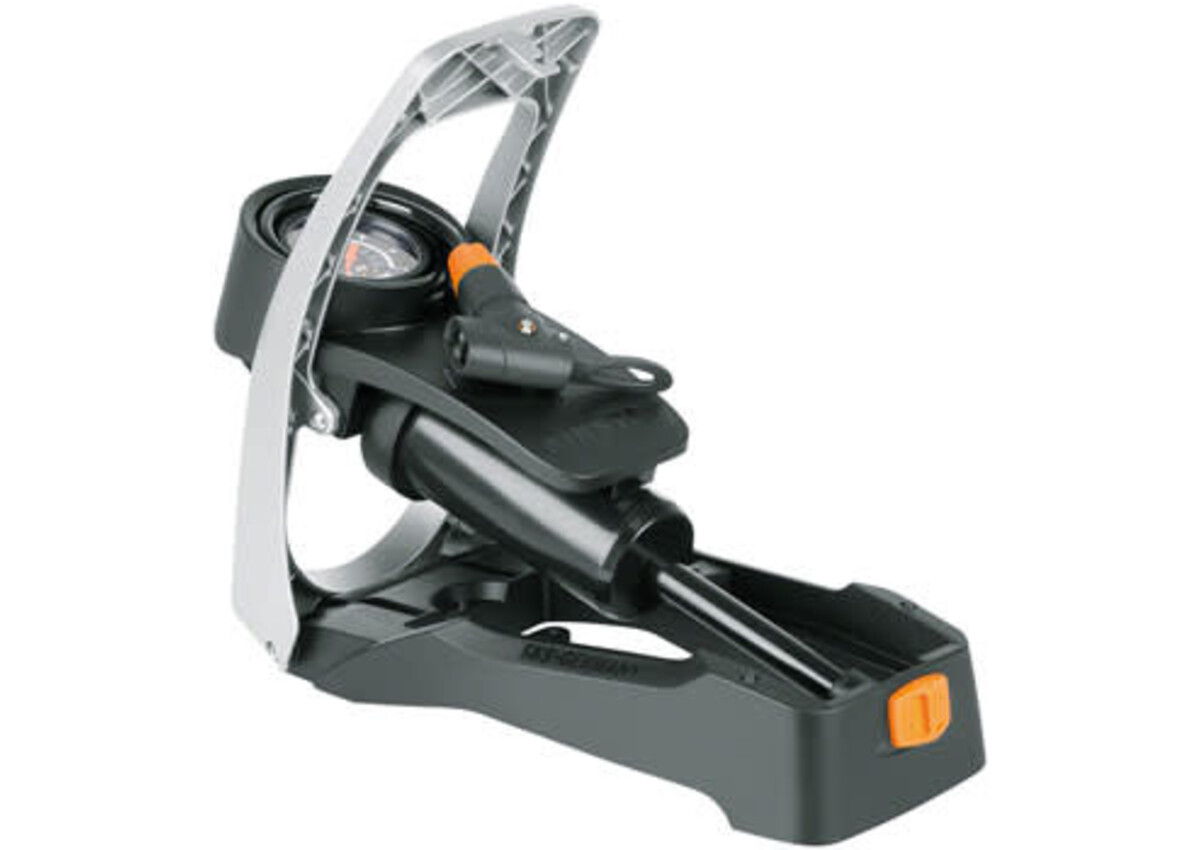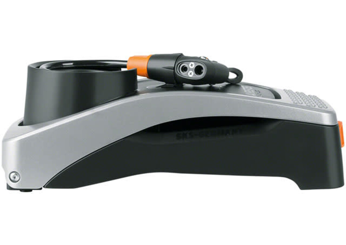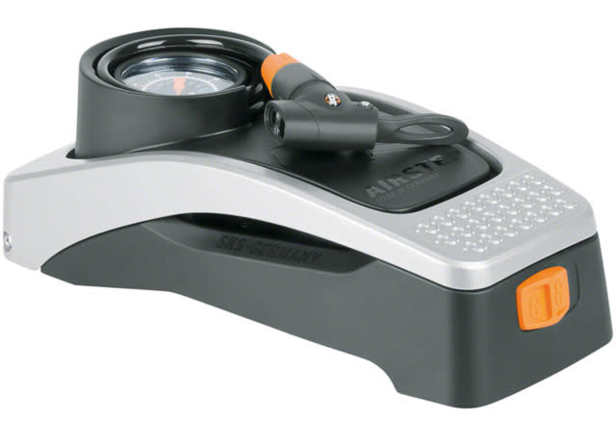 The SKS Airstep foot-operated pump quickly inflates tires up to 7 bar (102psi). The pump can be mounted to the wall for storage. Features an aluminum foot pedal locks down and a self-contained spiral hose.