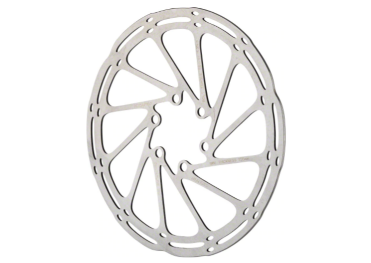 The SRAM CenterLine rotor design provides a smooth, consistent, and quiet running braking surface. Rounded edges make for easier wheel installs and are UCI-compliant.