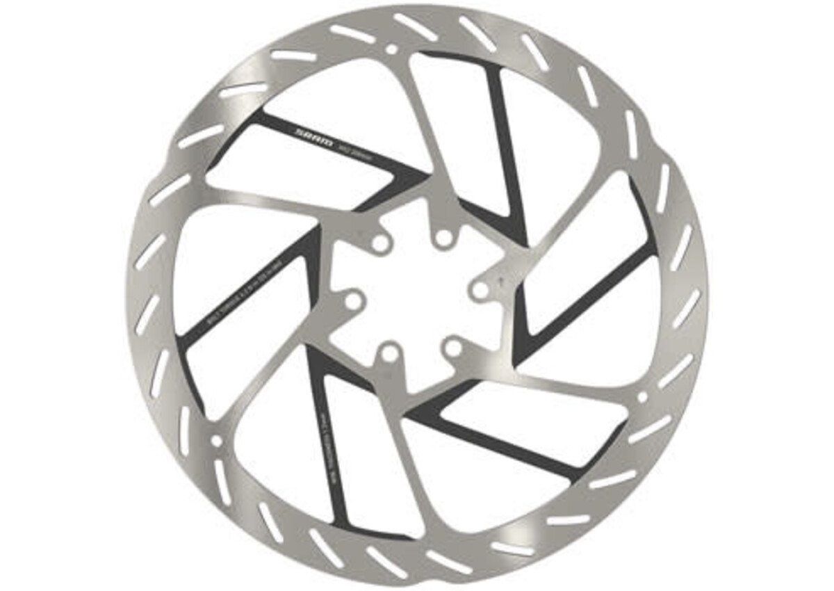 The SRAM HS2 Rotor is a mountain bike specific rotor designed to improve brake performance while reducing noise and increasing heat dissipation. It features a brake track pattern for increased pad traction and recessed spokes with thermal dissipating paint, the HS2 is a more powerful, quieter rotor with best-in-class heat management.