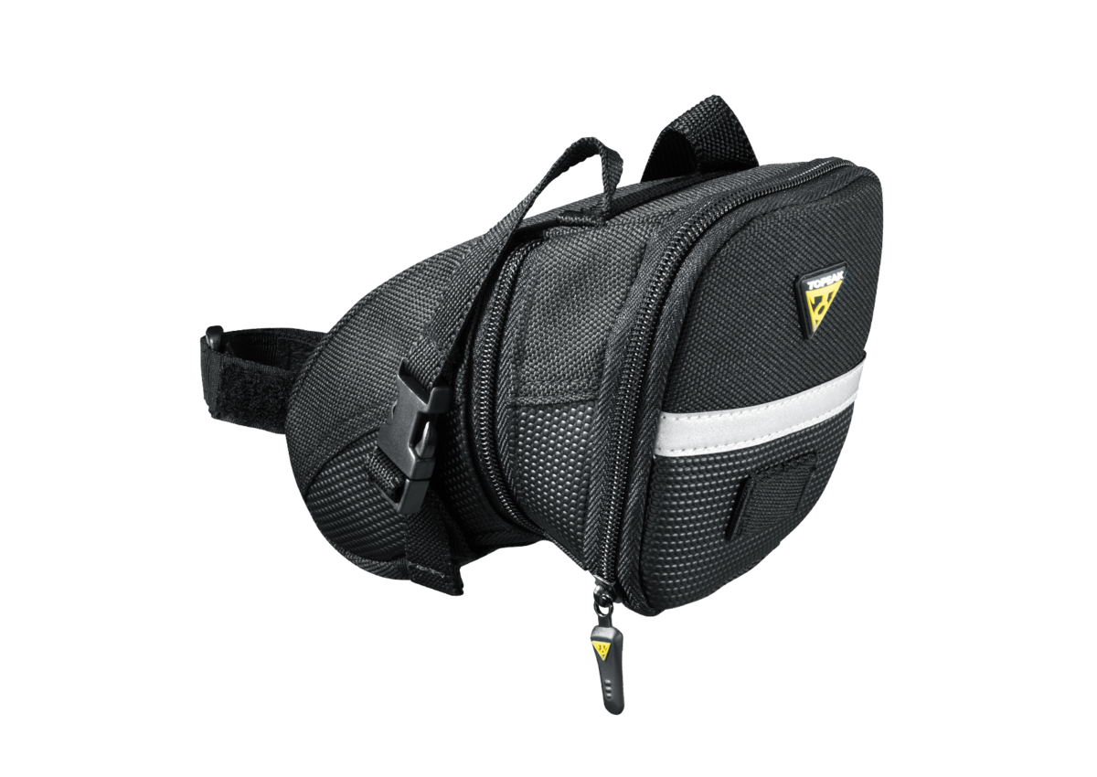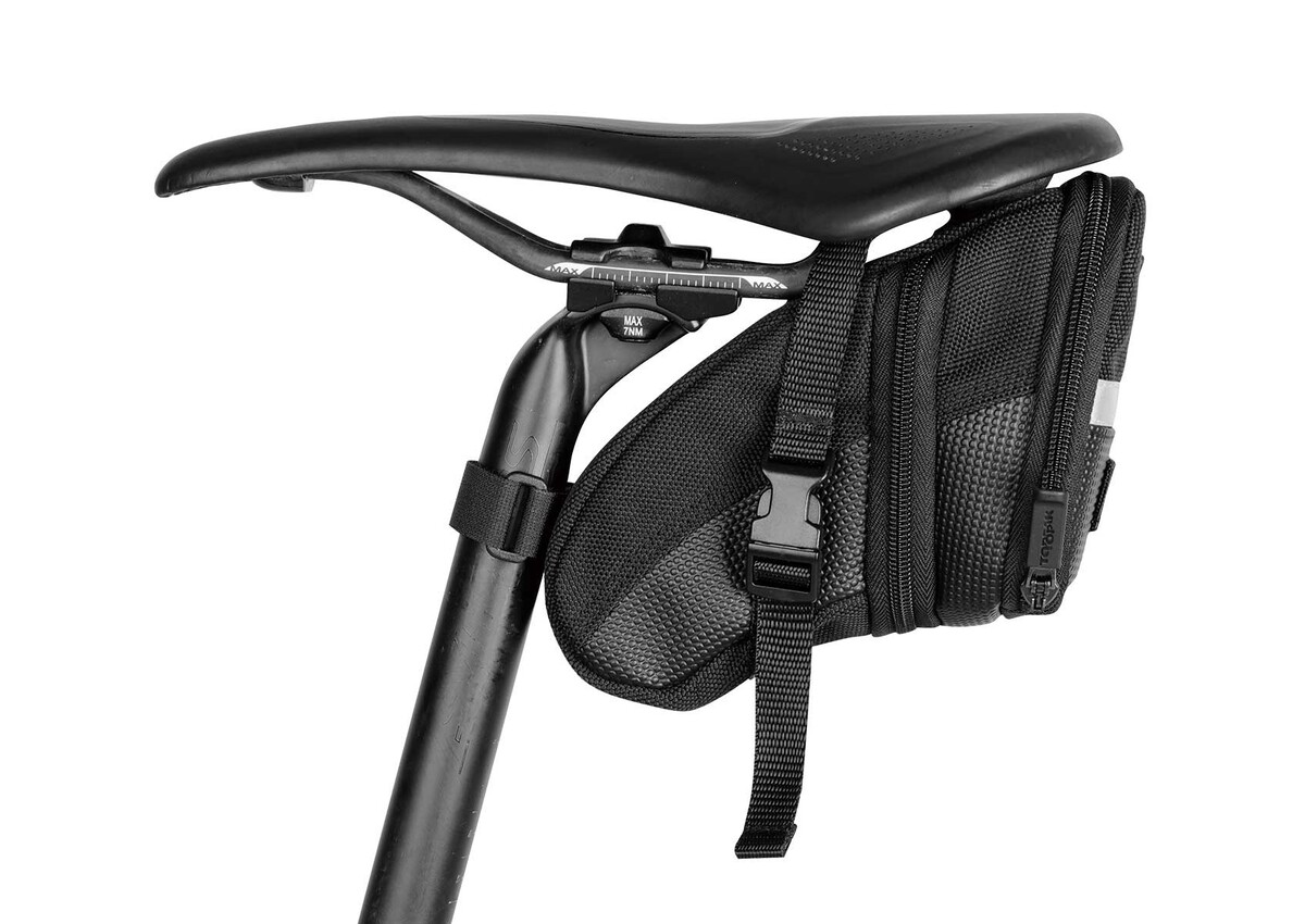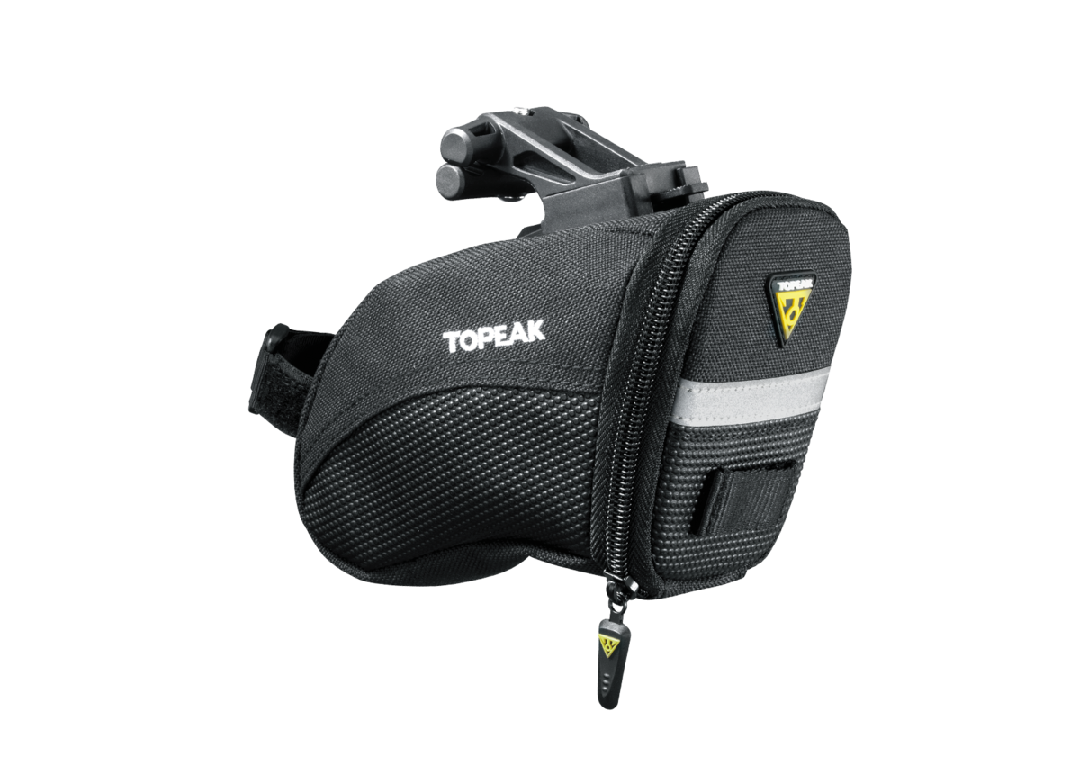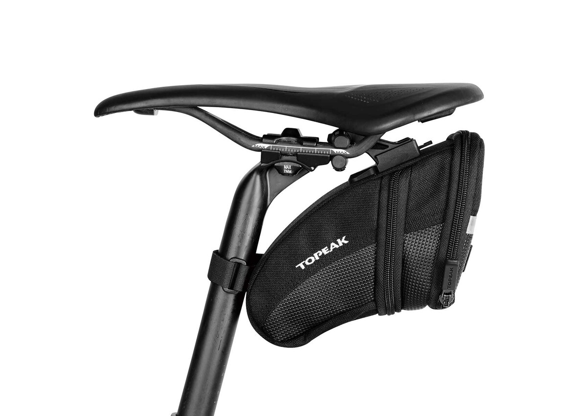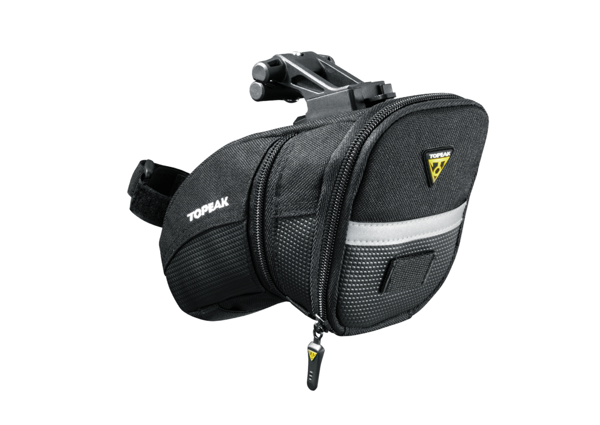 Aerodynamic seat bag holds tubes, tools and other repair items. Mounts with either our innovative QuickClick system, or our Quick Release Buckle system to fit all railed saddles. Four sizes offered to exactly fit rider’s needs.