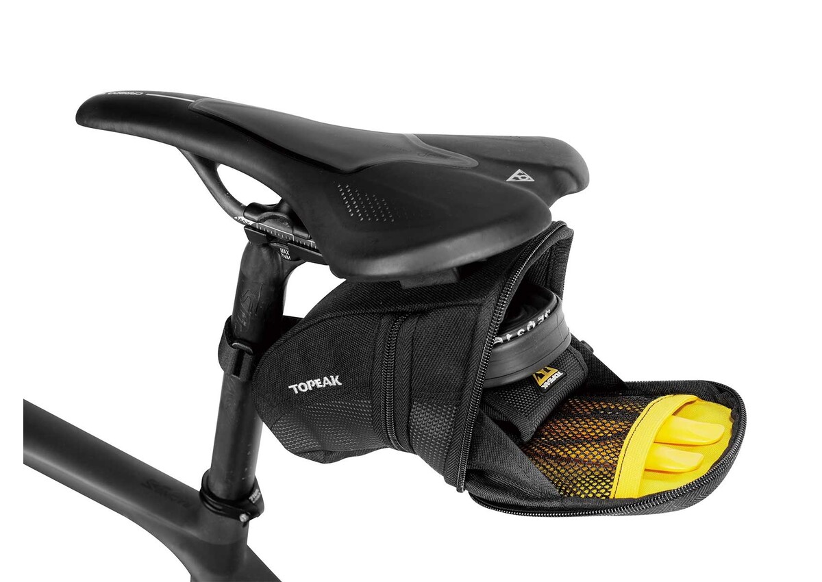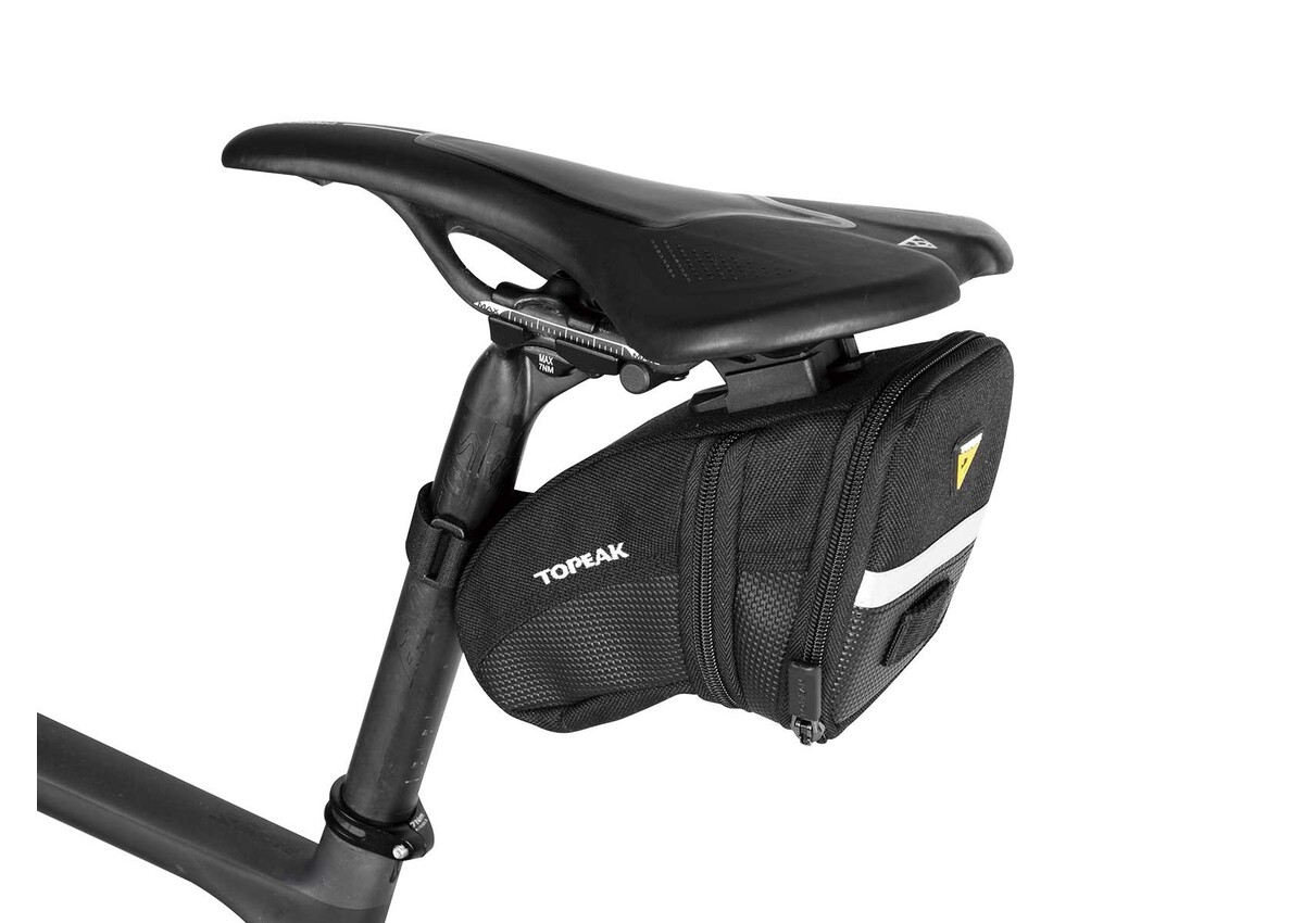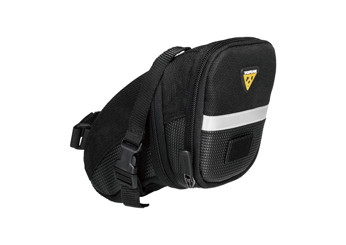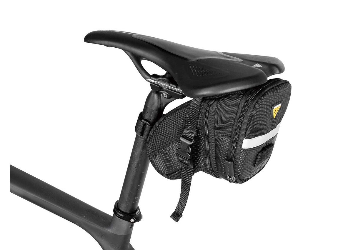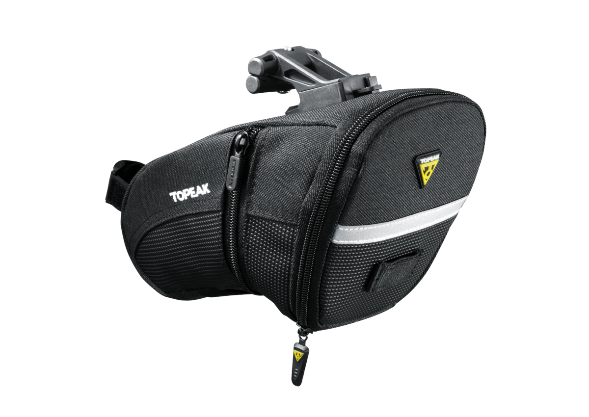 Aerodynamic seat bag holds tubes, tools and other repair items. Mounts with either our innovative QuickClick system, or our Quick Release Buckle system to fit all railed saddles. Four sizes offered to exactly fit rider’s needs.