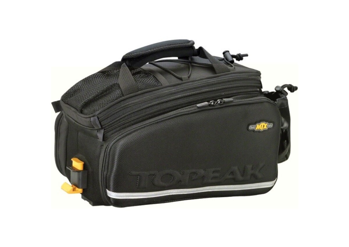 The MTX TrunkBag uses a unique material process to provide our largest, stiffest, and most weather resistant MTX series bag. In addition to the expandable top section and rear water bottle holder, the side panels expand to full panniers maximizing capacity. Compatible with all MTX QuickTrack® racks with attachable side frames. MTX Dual Side Frames are required when using panniers on MTX BeamRacks.