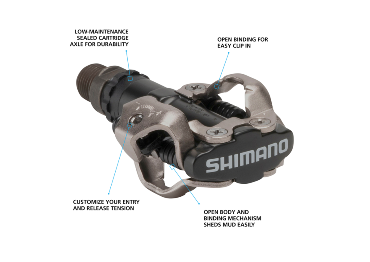 Shimano's M520s are affordable clipless pedals that are easy to enter and exit, and built to last. They boast dual-sided Shimano SPD bindings, which make them perfect for mountain bikers or roadies who prefer wearing walkable shoes with recessed cleats. T
