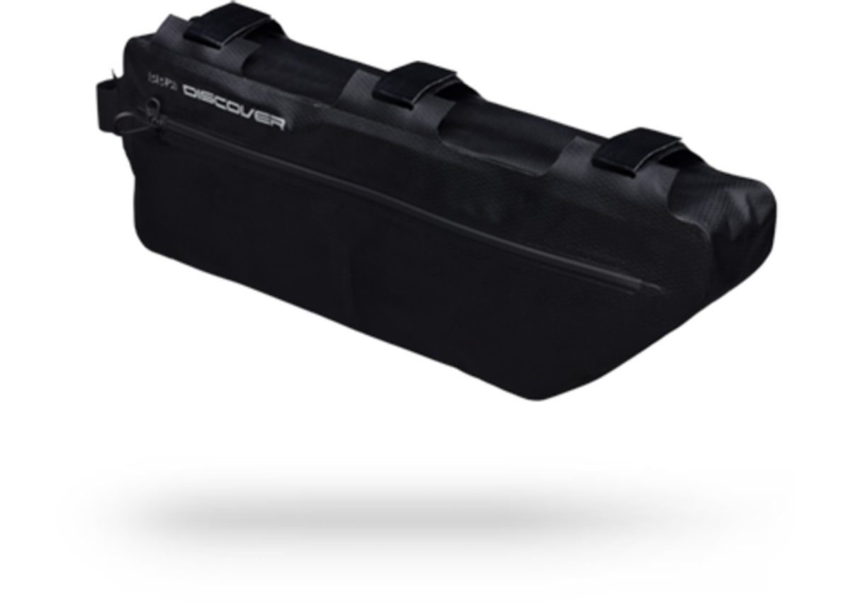 The PRO Discover Team Frame Bag is a lightweight and waterproof frame bag for bikepacking. Designed to provide you with a better sports’ bicycle experience the PRO Discover Team Frame Bag provides bikepackers with a large storage solution which straps neatly within the front triangle of your bike. It features a 5.5-litre capacity, welded seam construction and is both light-weight, at just 135-grams, and fully waterproof. The Discover Team Frame Bag also boasts an anti-sway design to ensure it stays in place even on the roughest terrain.