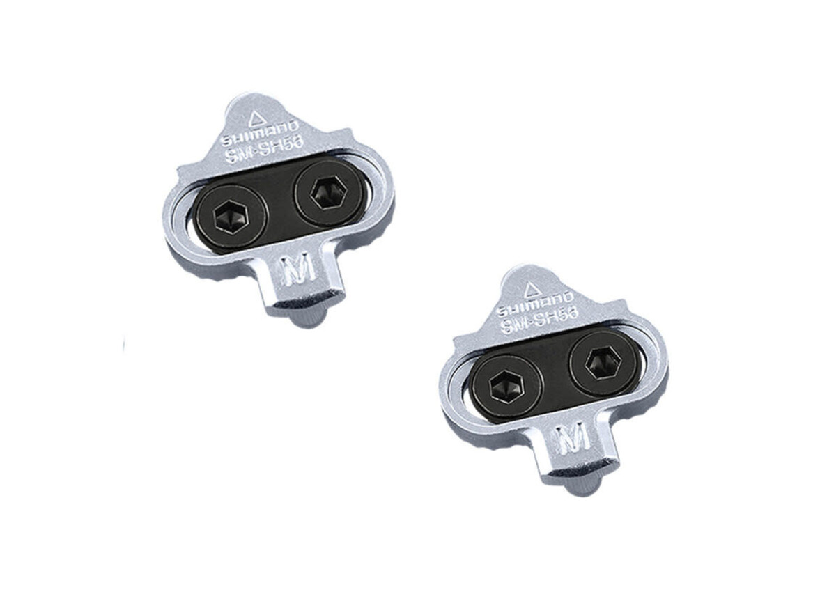 Replacement cleats for all Shimano® SPD clipless pedals, featuring an easy-to-unclip multi-directional release. Ideal for casual or fitness riders looking for more clipless pedal confidence, these will allow you to clip out either on the outside or inside of the pedal. Lifting and twisting your heel can also release the pedal. Not recommended for performance off road and pavement riding, choose the SM-SH51 cleat instead.