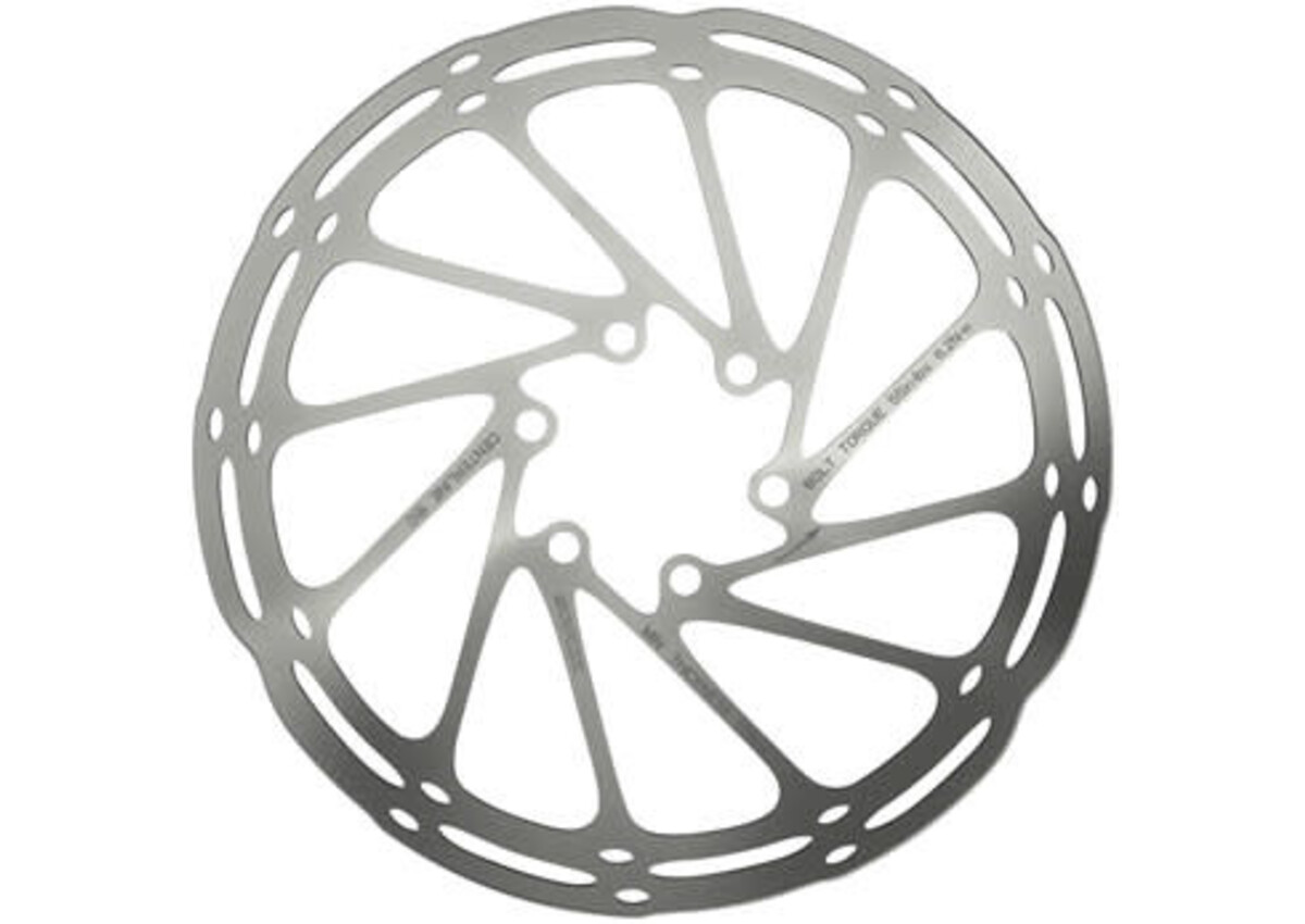 The SRAM CenterLine rotor design provides a smooth, consistent, and quiet running braking surface. Rounded edges make for easier wheel installs and are UCI-compliant.