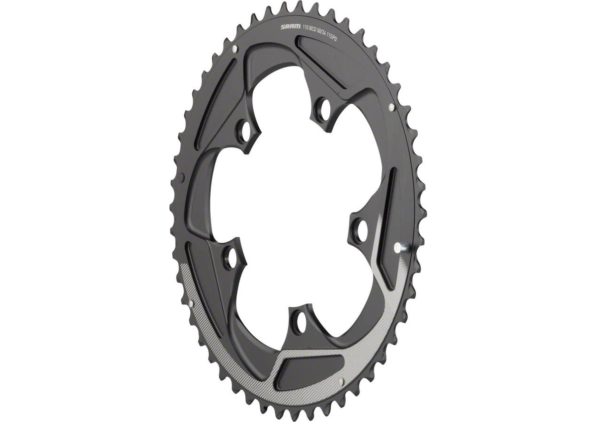 SRAM Yaw Chainring - 50T, 110mm BCD, 11-Speed, Black With Silver Trim