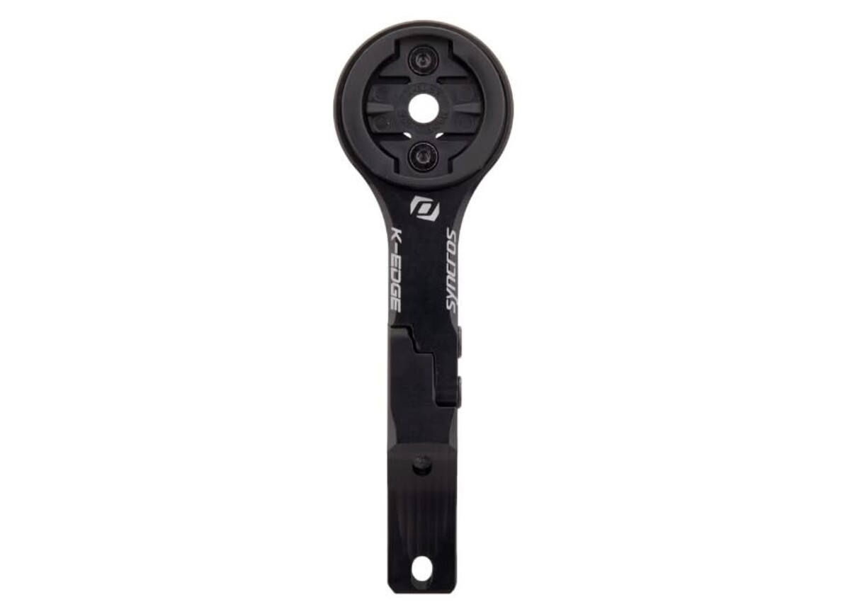 The CNC-machined Front Computer Mount by Syncros for Garmin bike computers bolts directly to the iC (integrated Cockpit) handlebar stem unit for a seamless look.